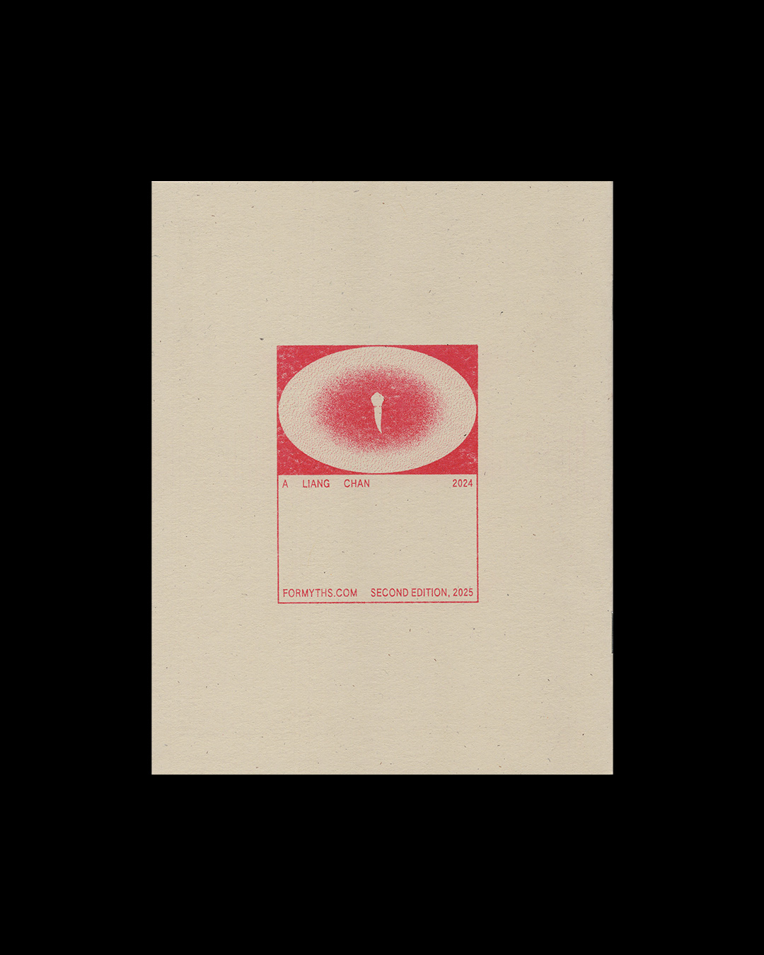 Risograph printed with black ink interiors, and bright red ink on the cover